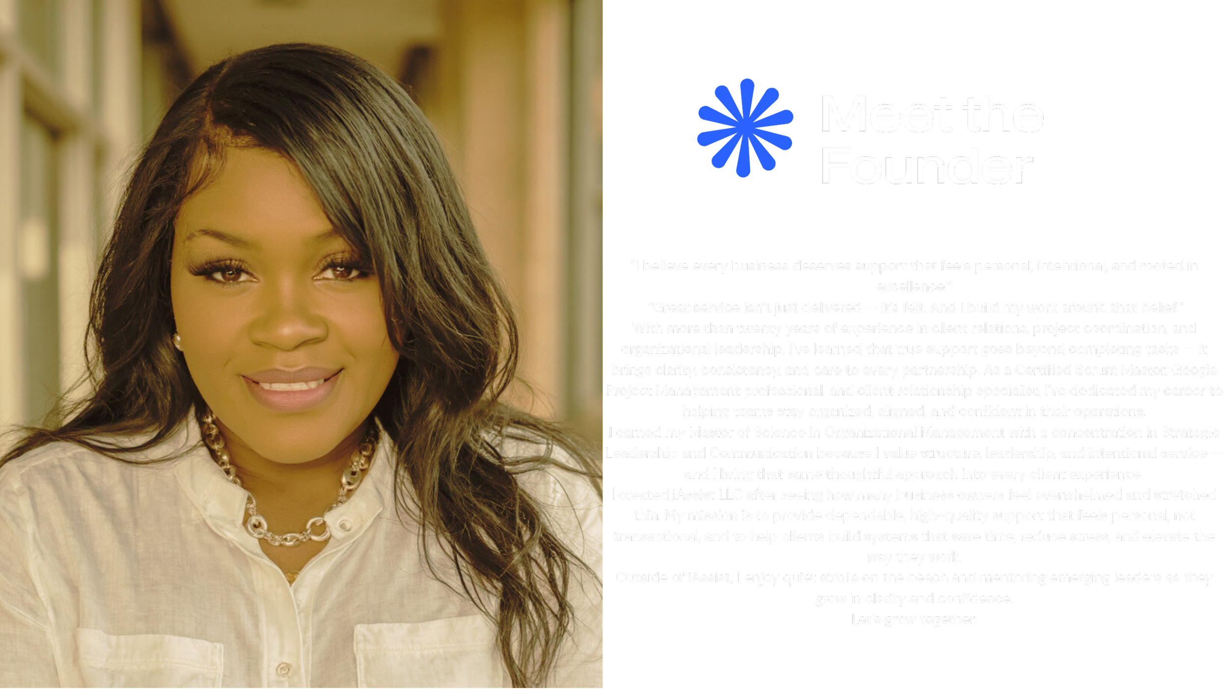 iAssist LLC empowers business owners with Administrative Support, Customer Support, and strategic Add-Ons that save time, reduce stress, and elevate daily operations so you can focus on growth.
